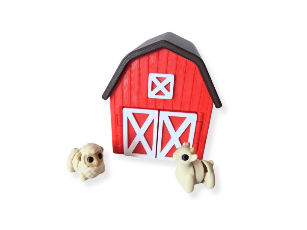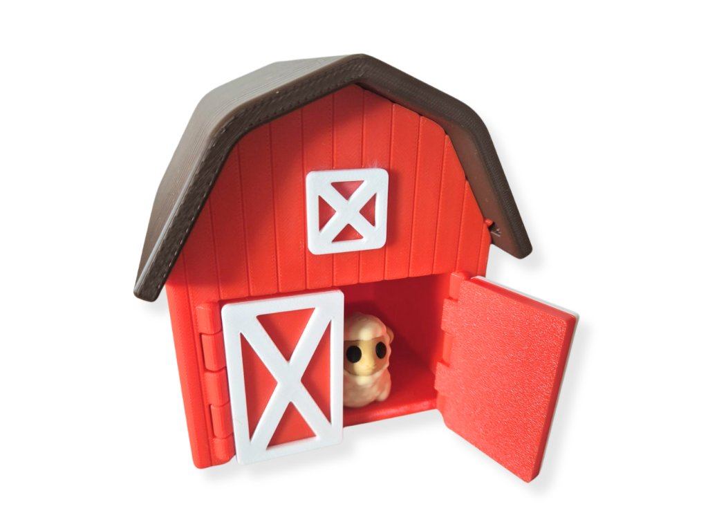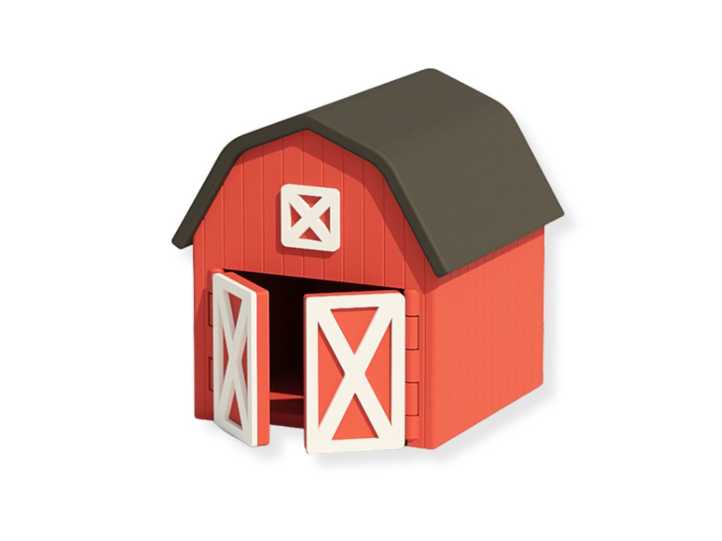 Červený domek s hnědou střechou je domovem pro všechna zvířátka, která najdete na tomto eshopu. Stodola má otevírací dveře a pohyblivou střechu, aby se dovnitř dalo vlézt ze všech možných stran.